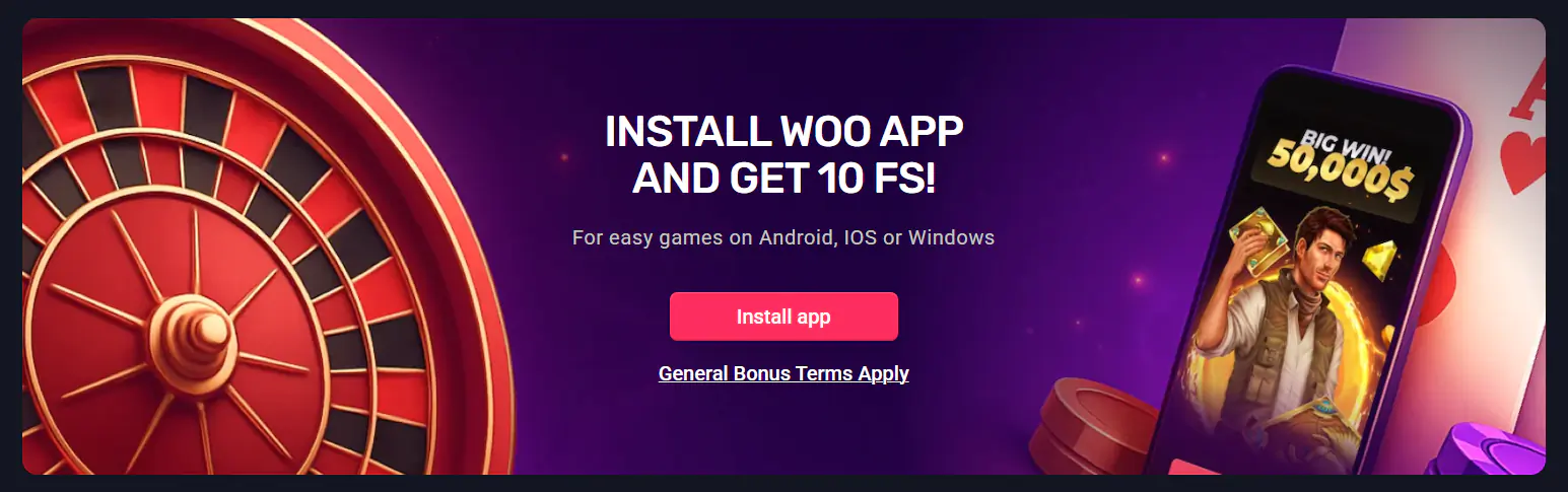 We also have a mobile app, which differs from the conventional ‘in-store download’ app. The Woo Casino app is a Progressive Web App (PWA) which you can install directly from woocasino website. It just creates a shortcut of the web app on your phone without the need to install traditionally.
