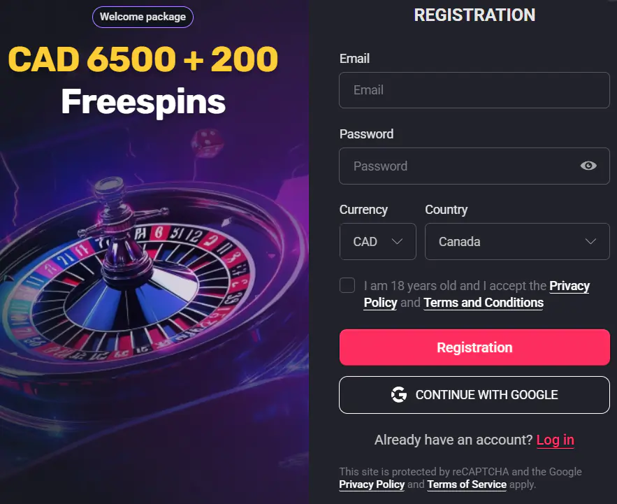- Fill the registration form which features the following fields: email, password, currency, and country. You can also sign up with your Google account for faster registration.